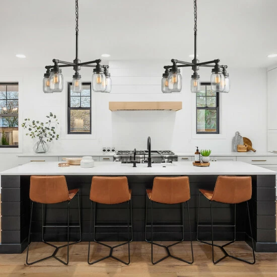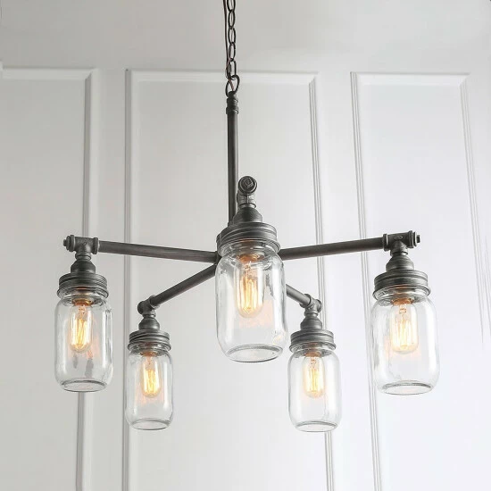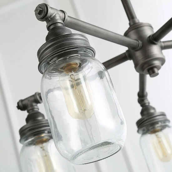 Sleek & Industrial Look: Crafted with 5 elegant glass jars, silver brushed black finish and water pipe frame, this chandelier perfectly shows a sleek and updated look.