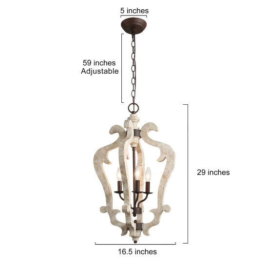 As a chandelier that can maximize the style of the farmhouse, it uses white-washed and natural-weathered wooden lantern as the overall frame, which is of high-quality and durablility. Three rusted candle holders are installed inside to install bulbs with a maximum wattage of 40 watts, ensuring that sufficient light is brought to your space, creating unique farmhouses, villages, and French-style cottages, giving your space an old appeal.