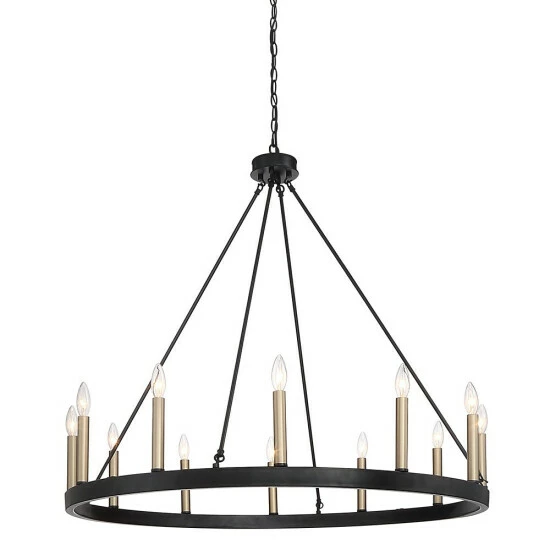 Distinguished and dazzling, this iron wagon wheel chandelier is sure to make for an arresting addition to home decor. The solid iron wheel is matched with contrasting candelabra-style lights for a positively regal look perfect for illuminating any area. Choose from multiple finish options to best fit your space.