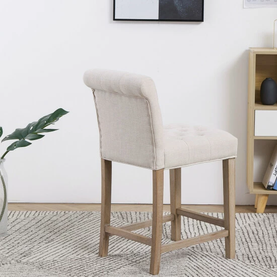 Set of 2, Built to last long, Ideal for any dining table, charming linen upholstery on the seats and backs, this classic-style Tufted Upholstered Dining Bar Chair is made of distressed washed solid wood legs, button-tufted well-padded seats and versatile linen Beige fabric on a durable frame.