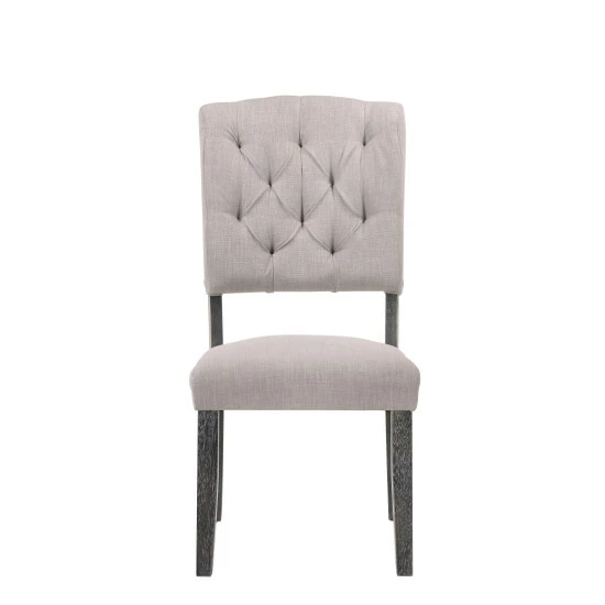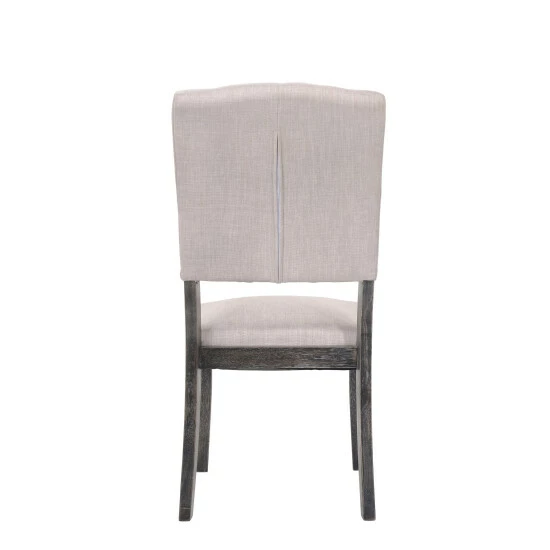 Supreme sophistication and robust construction coalesce in these wonderfully chic chairs. The natural weathered look of the wood is perfectly paired with serene upholstery in a high back style for optimum comfort and classic beauty.