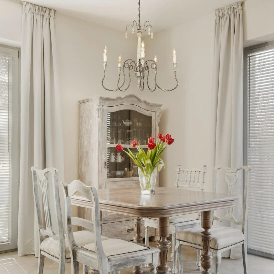 Hearkening to the chic warmth of French country glamour, this chandelier is a refreshing take on old world splendor. The artful design adds a splash of personality, and the alluring finish elevates decor in an instant.