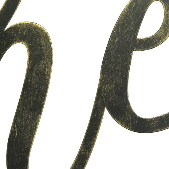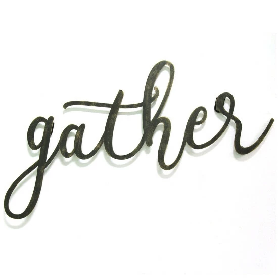 This fun and simple metal laser cut word display is the perfect accent to your home. The Stratton Home Decor Black gather Script Wall Dcor is the perfect addition to your gallery wall or small space in your home. It measures 30 inches wide by 0.45 inches deep by 13 inches tall. It comes ready to hang. Item is handmade and painted by skilled artisans. Product may have some variances in comparison to photo shown.