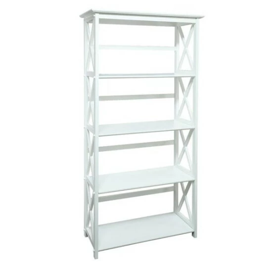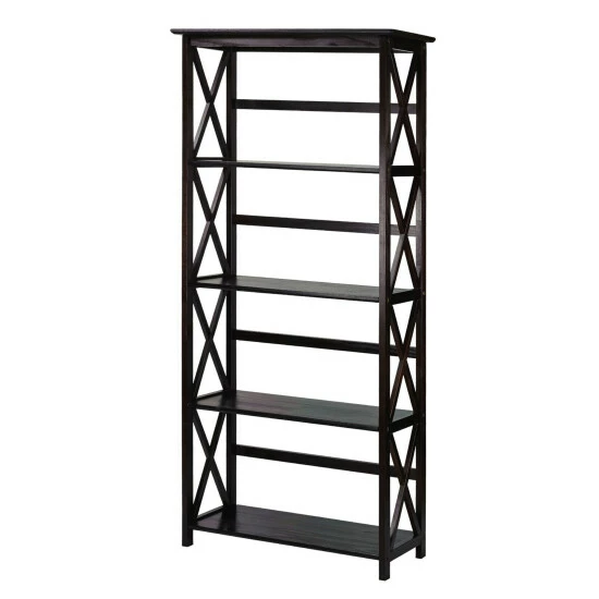Every volume in your collection can be stowed away atop the sleek and solid construction of this elegant bookcase. The solid wood construction is lightweight and easy to assemble, and the X-design on the sides and horizontal back slats keep all your treasures safe and secure. Choose from a selection of finishes to match with your home decor.
