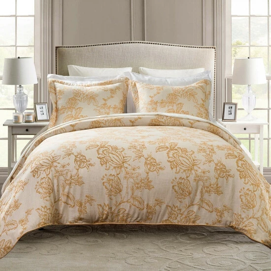 Sophisticated splendor and French country refinement are the hallmarks of this lovely duvet cover set. The marvelous floral pattern enlivens and enriches a space with traditional elegance, delivering color and artfulness for a refreshing update to bedroom decor.