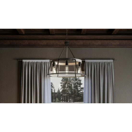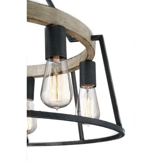 Warm, weathered, and alluring, this chandelier is the perfect addition to farmhouse decor. The grey ash finish of the thin metal body pairs perfectly with the whitewash finish of the faux wood accents. Provide a soft, ambient glow to any space with this handsome chandelier.