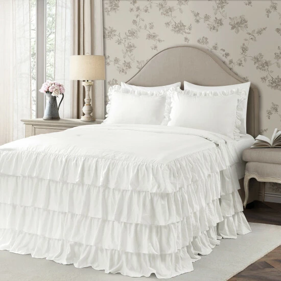 French country refinement is sure to enliven and enrich your room with this ruffled bedspread set. The set is delicate and lovely, offering a graceful touch that you are sure to adore for years to come.