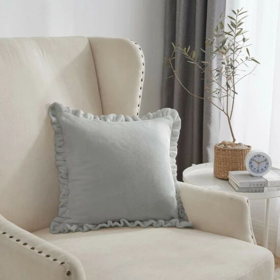 Inspired by the sought after and loved finds of vintage stores and flea market discoveries, this soft and cuddly decorative pillow will inspire you to curate your own romantic and whimsical environment. Bring romantic and timeless fashion into your home with this Plush Decorative Pillow. Fabricated in classic and muted Shabby Chic colorways, these elegant throw pillows bring vintage, and cozy aesthetic into to any room. Pair the solid pillow with a muted floral or a lacy and loved decorative throw, or a vase full of your favorite roses. The simple and country feel of this pastel blue, pink, grey or ivory pillow sits perfectly on your living room sofa, or accent chair. Please follow care instructions on label.