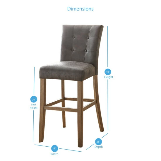 - Barstool: 46 inches high x 19 inches wide x 25 inches deep