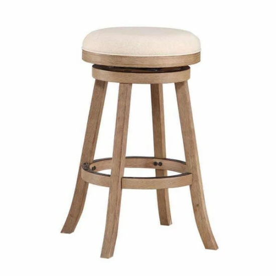 The backless Fenton Stool can be tucked away or put on display, depending on the size of your space. However you use it, this stool is a stylish and wise investment. Its eco-friendly rubberwood frame features a handsome multistep wire-brush finish. Linen upholstery covers the high-density foam seat. The Fenton features a full-ring footrest protected with a metal kick plate on top and a double seat apron. The ball-bearing steel swivel plate provides a flawless 360-degree swivel.