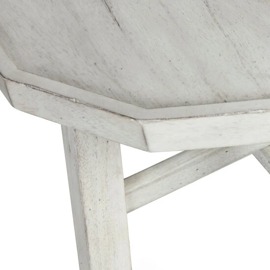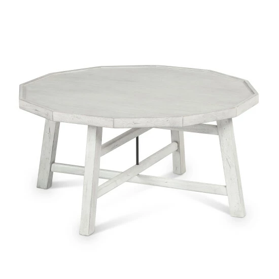 A perfect set to highlight your modern farmhouse dΓ©cor, these unique shaped occasional tables feature a distressed alabaster finish, tray style top, and wood plank legs supported by double X-stretchers and a metal center support. Β The perfect complement to your living room dΓ©cor.