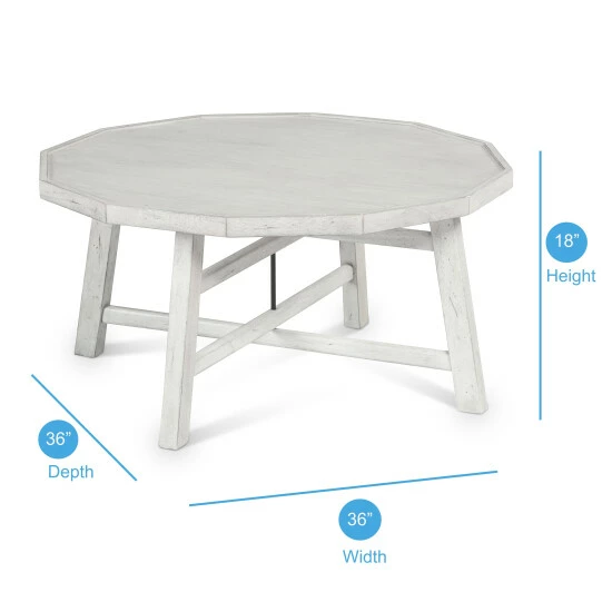 - 36-inch diameter coffee table works well with both sofas and sectionals
