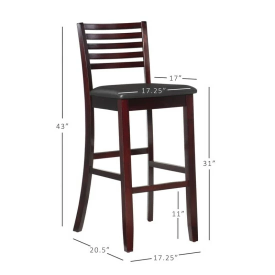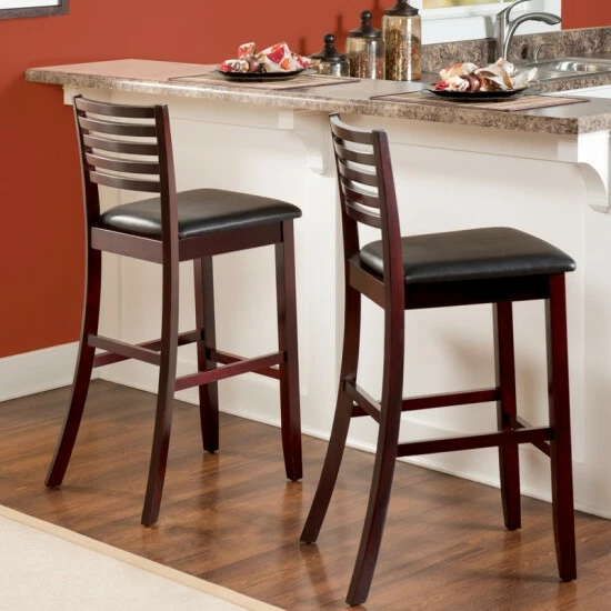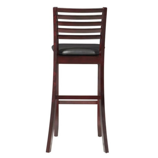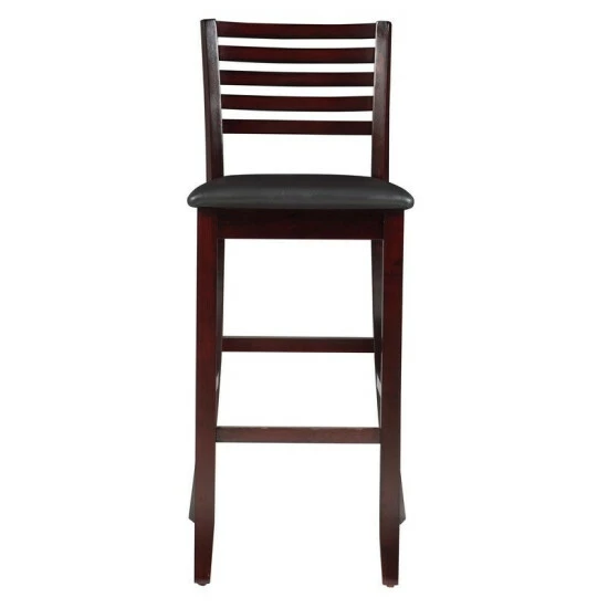 Update the look of your dining space with this attractive bar stool. This bar stool is constructed with an espresso finish and a ladder back design. Weighing less than 20 pounds, you can easily move this bar stool to help create a look that you most enjoy. Featuring a plush vinyl seat, this piece is constructed with four-foot rails for plenty of stability and durability.