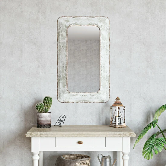 Bring country cottage charm into your home with this rustic mirror. Evoking the best parts of industrial and farmhouse chic, this mirror is versatile, artful, and elegant.
