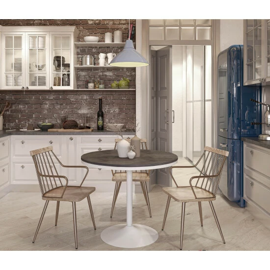 Bring farmhouse style to your dining room with the Preston Chair by The Gray Barn. An updated take on the traditional spindle back chair, the Preston has tapered metal armrests, spindles, and legs with a contrasting wood seat. Perfect for a dining table or extra seating. Available in a variety of finishes.