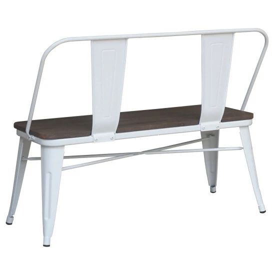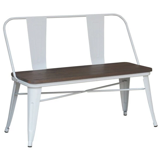 The flared legs provide plenty of support. It will look great in a hallway, rec room, or as a replacement for two (2) chairs along a dining table. The combination of the solid elm wood and the painted white finish is a fresh addition to any decor.