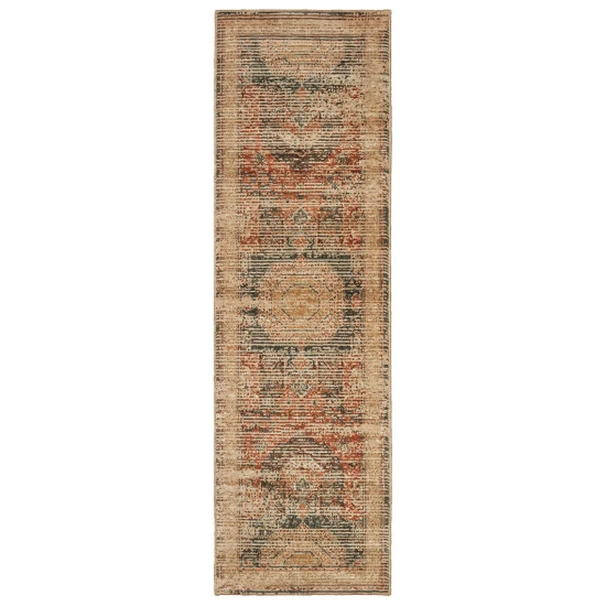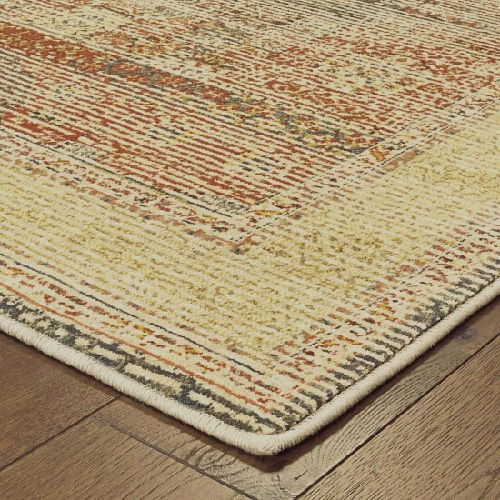 This area rug offers an authentic take on the bohemian trend that focuses on capturing the beauty and charm of vintage carpets through updated traditional styling and unique color combinations. Warm neo-traditional shades of saffron, coral, bright apricot and blood orange are contrasted by smoky teal, ash blue, charcoal and oatmeal shades. Machine-woven in a high density durable construction of a space-dyed nylon/polypropylene blend of yarns