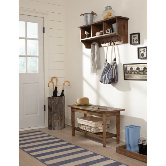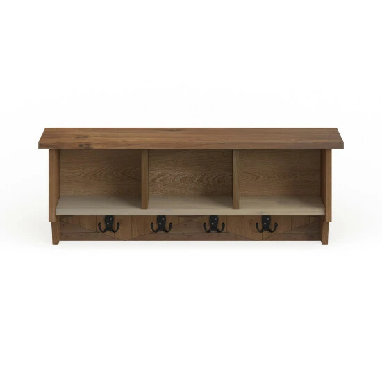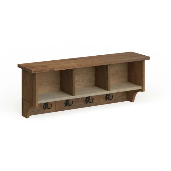 Reclaimed wood wears its history proudly, in the form of this gorgeous reclaimed wood coat hook. Its lacquer finish allows each piece to show its natural wood knots, as three large cubbies for additional storage or display space.
