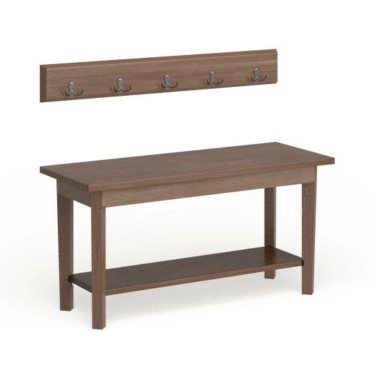 Get ready to go out with this rustic coat hook and bench set from The Gray Barn. Each piece is manufactured from reclaimed wood to create a coordinated look in your entryway. Metal hooks hold coats and accessories, and a lower shelf on the bench provides extra storage space.