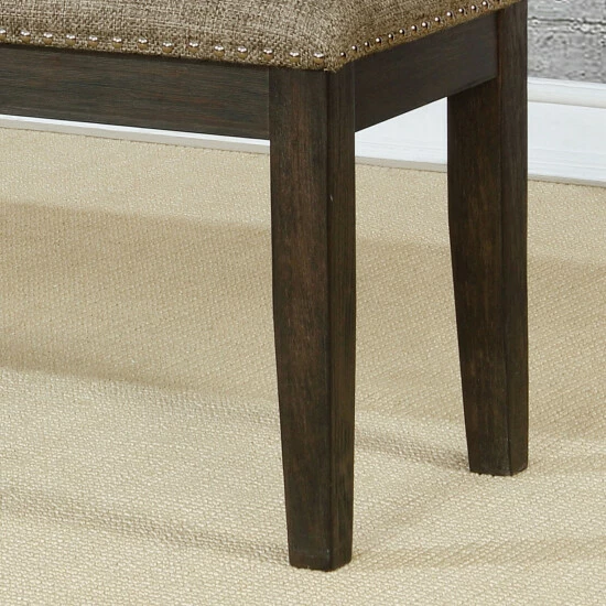 This simple yet elegant fabric and wood bench is perfect as a standalone seat or as a pull-up dining seat when unexpected guests drop by at mealtime. Upholstered in cool grey fabric cushioning accented by nailhead trim, this bench provides rustic flair that showcases a simple appeal.