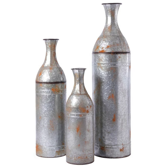 Add a decorative look to your home with this galvanized metal floor vase decor. Tall, graceful, and vintage, these vases feature galvanized metal and will bring farmhouse charm. Whether used as home decoration just the way it is or as a vase to add floral inspiration, you can’t go wrong with this decor.