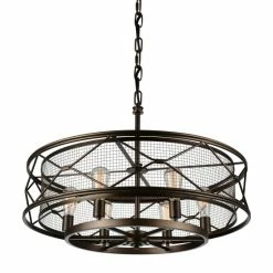 Industrial flair meets contemporary grace in this alluring and resplendent chandelier. The cage drum shade encloses Edison-style bulbs to create a striking visual presence, while a golden brown finish lends depth and dimension.