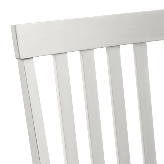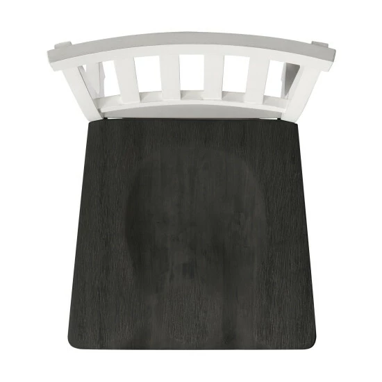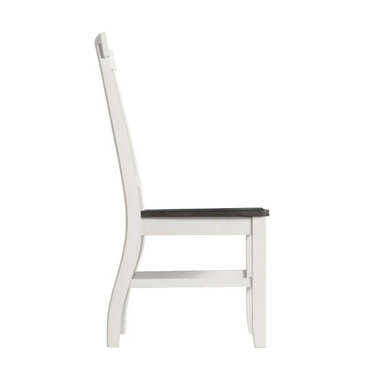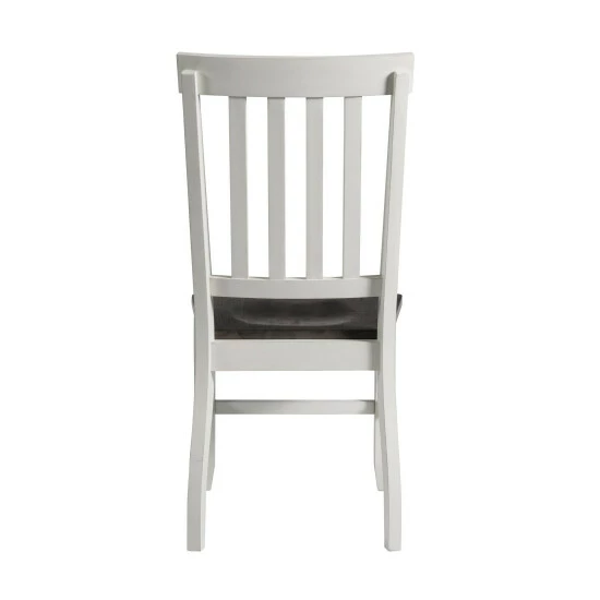 Incorporate graceful seating with this set of two side chairs, made in a two-toned finish of grey and white for a classic look. Slat backs and wooden seats complement cottage chic or farmhouse furnishings for easy decorating.