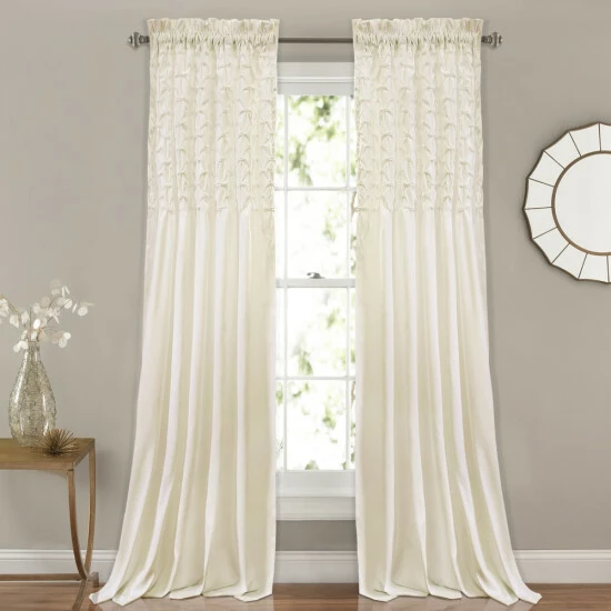 Give your decor a touch of breezy style with this set of two curtain panels. Featuring a pin-tucked design at the top, the flowing curtains are available in white, grey, or ivory to perfectly match your decor. The set is machine washable for convenient cleaning.