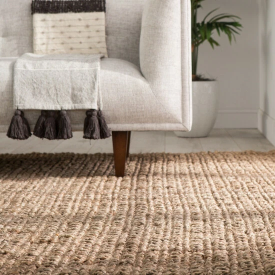 This hand-spun jute area rug offers a neutral foundation to transitional homes. Perfect for textile layering and coastal appeal, this texture-rich natural layer lends an eco-friendly accent in a warm-toned taupe hue.