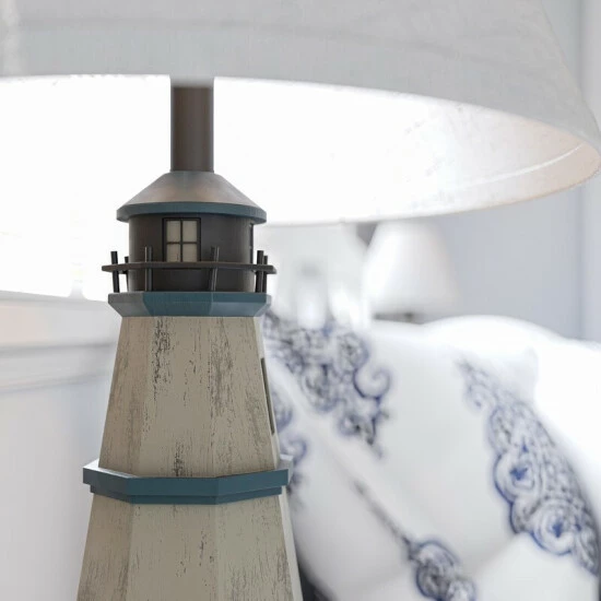Straight from the shores of Cape Cod to your coastal living room, this coastal lighthouse novelty table lamp provides a hefty dose of nautical style with its vintage lighthouse appearance. Shaped just like an iconic East coast lighthouse and topped with a white fabric linen shade, this tall table lamp will provide your coastal living room with bright, room-filling illumination from on top of your end tables. With itβs gorgeous, iconic New England style lighthouse body and textural white tapered shade, this lamp invites you to sit and enjoy the soft, welcoming glow in your nautical-inspired living space. This ultimate coastal piece is the perfect finishing touch for your beachside cottage.