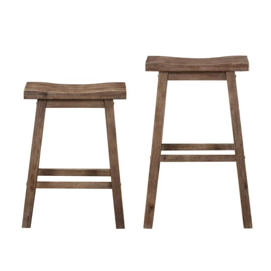 Bring attractive rustic style to your kitchen island with the Gray Barn Vermejo Saddle Counter or Bar Stool. Our Gray Barn Vermejo saddle stool is made from solid rubberwood. This environmentally friendly wood is prized for its hardiness and attractive grain. We use a multistep wire-brush finish which enhances the natural beauty of the wood even more. Itβs built for long-lasting stability and comfort, thanks to a wide, curved saddle seat and built-in footrests. Choose from our selection of available finish options: Barnwood, Chestnut, and Storm Gray. Seat height available in counter (24 inch) and bar (29 inch)Β