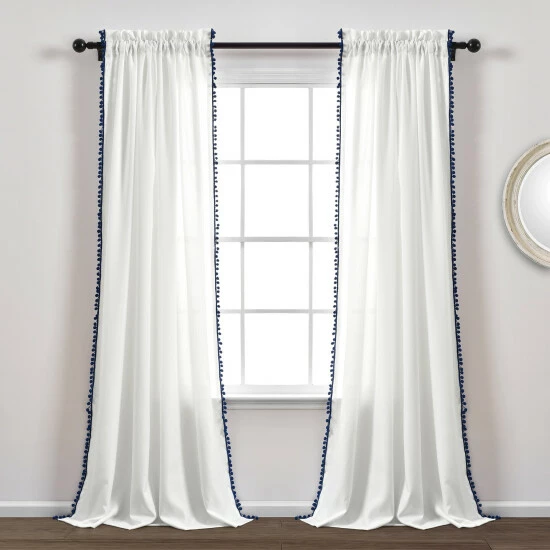 Make a splash in your space with this positively pretty curtain panel. The graceful white panel is highlighted with pom-poms in the color of your choice for a pop of personality you are sure to adore.