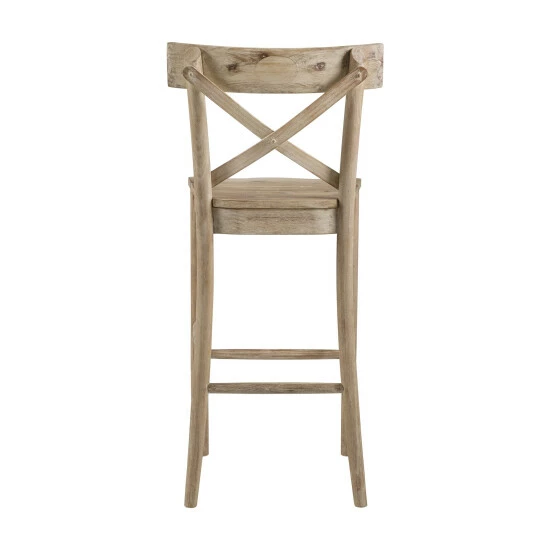 With a handsome look fit for any country manor, this bar stool features an x-back design and a solid wooden seat. The rustic design in a natural finish will complement any existing piece in your home.