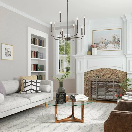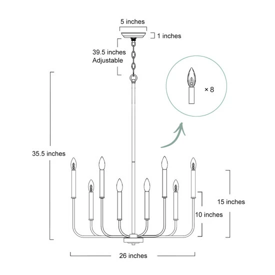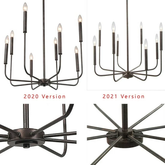- Eight 40 W candelabra-base bulbs (not included) stand exposed atop the arms to boost the brightness in your space.Β