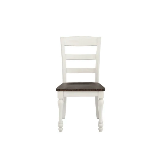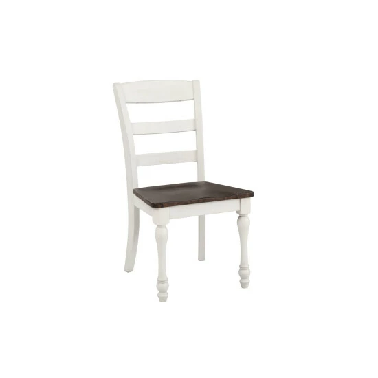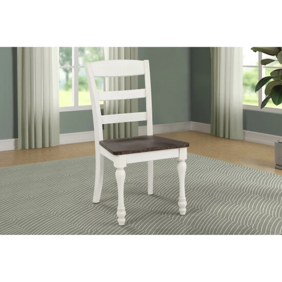 This elegant, wooden dining chair creates a dining ensemble filled with country character. The graceful, turned legs give it a rich, romantic vibe. The sturdy ladder back offers plenty of support for your everyday dining enjoyment. Pair it with a matching table, sold separately, for a classic dining room that exudes old world charm.