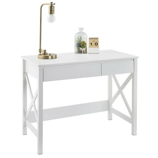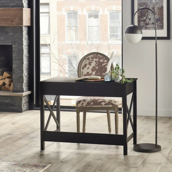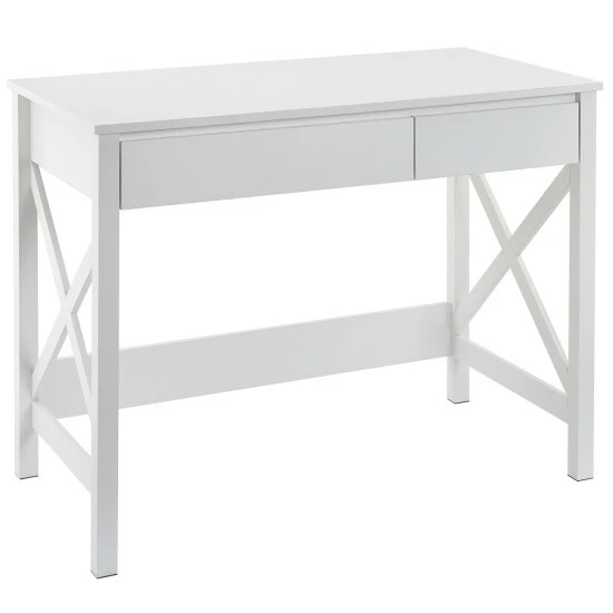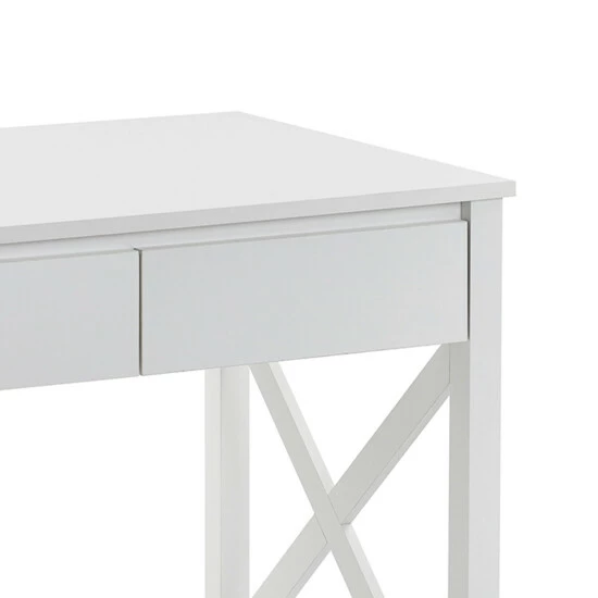 With clean lines and attractive X-shaped gables, the Xanadu Hill X-Frame Desk outshines ordinary writing desks. Place this versatile desk in your home office as a sturdy laptop desk or use it in your living area as an accent table or console table. And with two fully functional drawers with smooth roller-ball glides, you can keep your space neat and tidy.